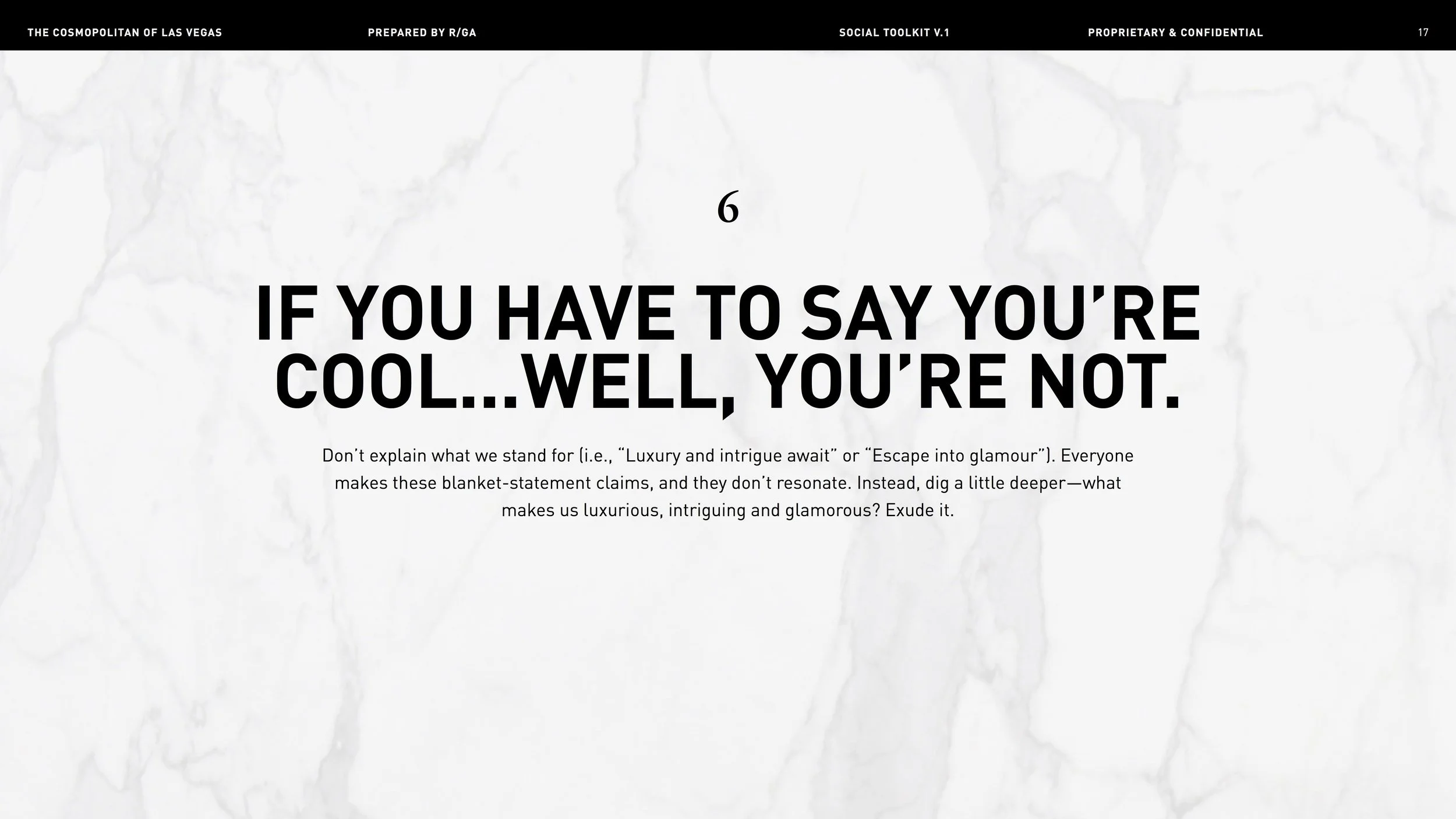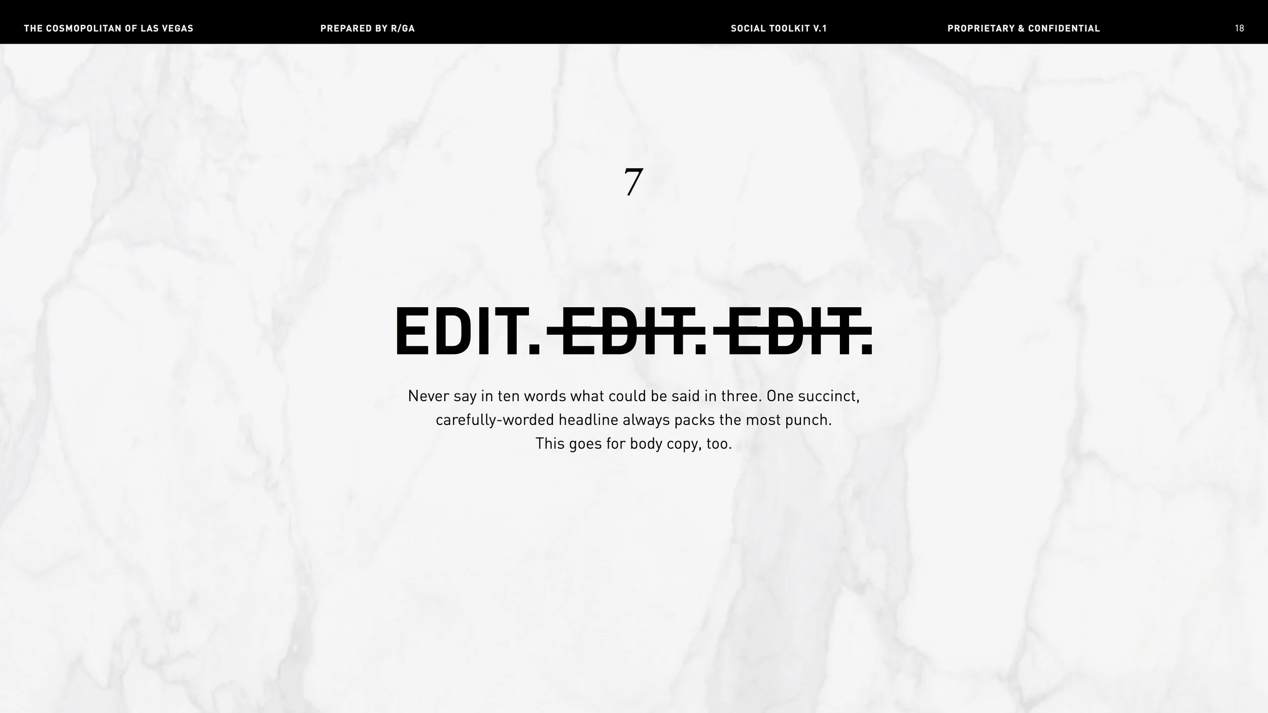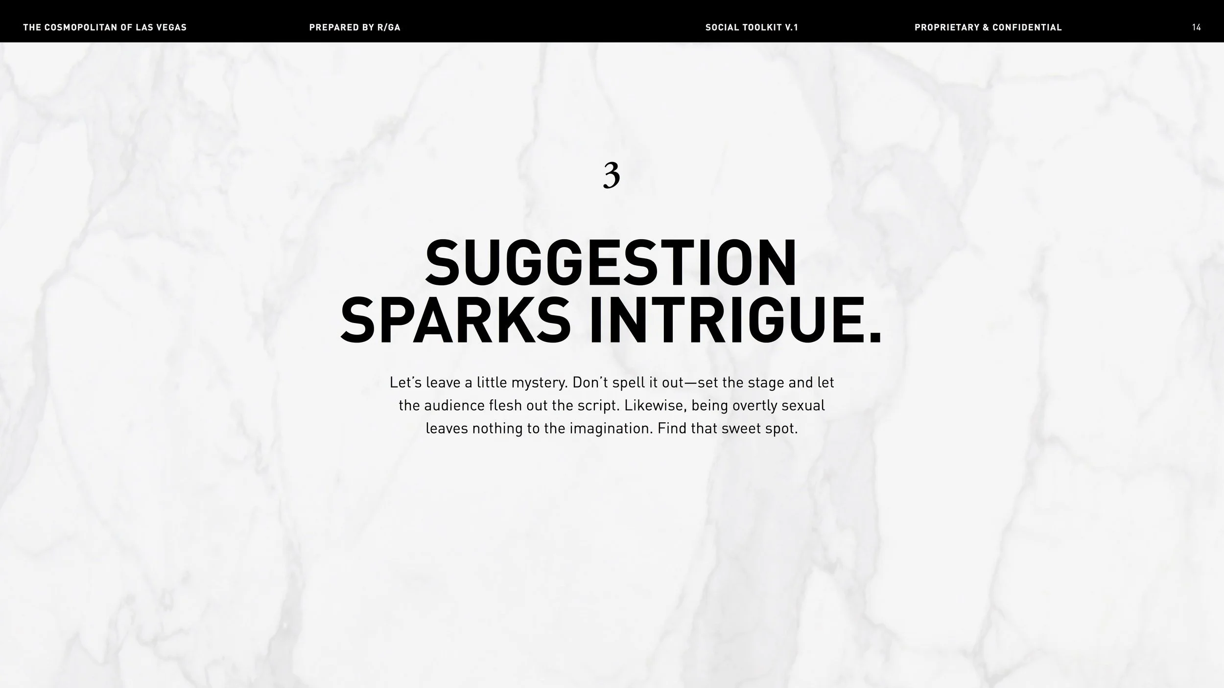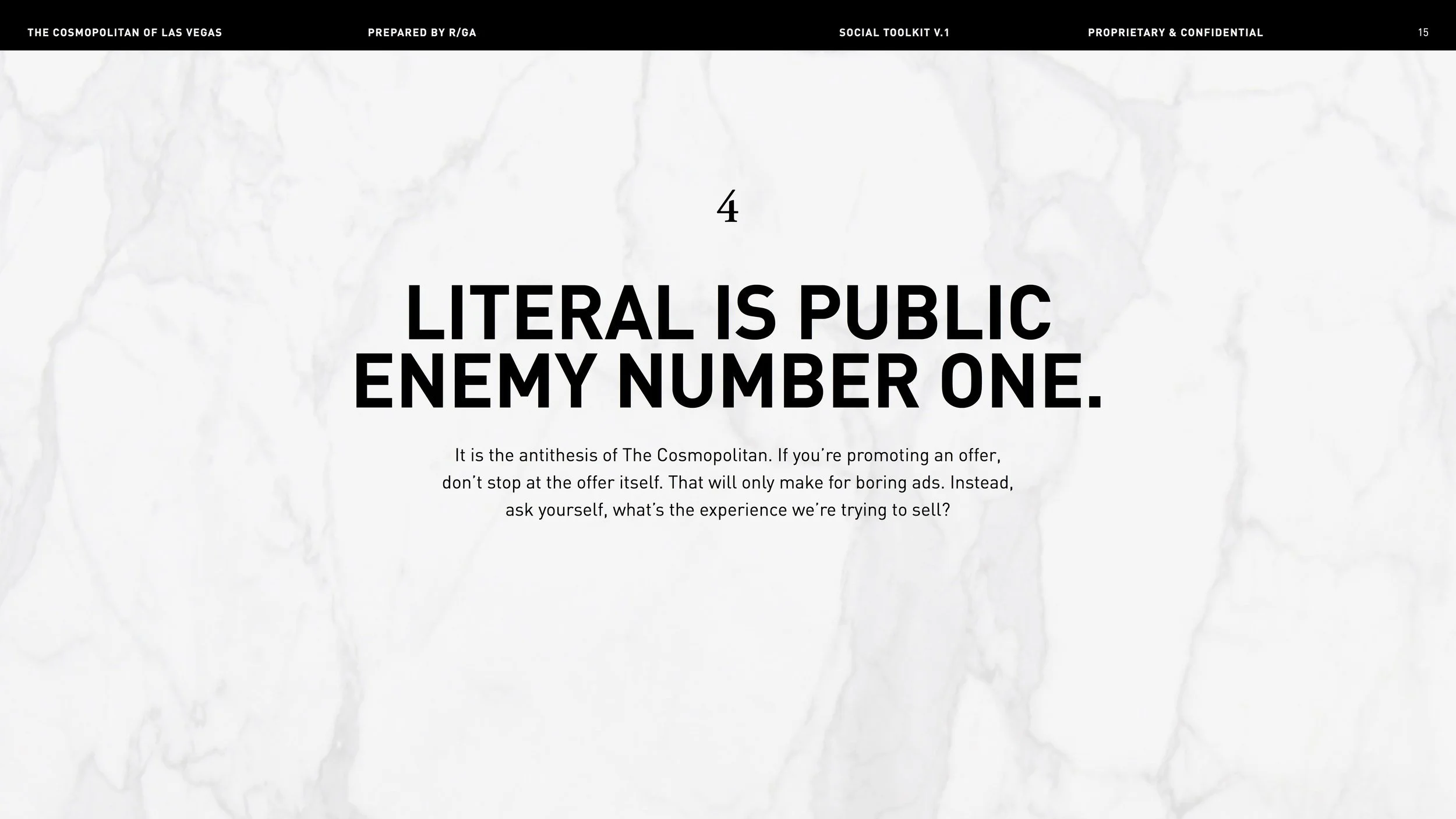 Once in a creative’s wildest dreams, there comes a brand so fun, so fierce — they let you do stuff like show two naked men in an ad and write “How to Make the Blank Page Your B*tch” in their marketing style guide. Enter the Cosmopolitan Hotel of Las Vegas, home of Just the Right Amount of Wrong. Here’s a smattering of my faves, created by Yours Truly and my team at R/GA.